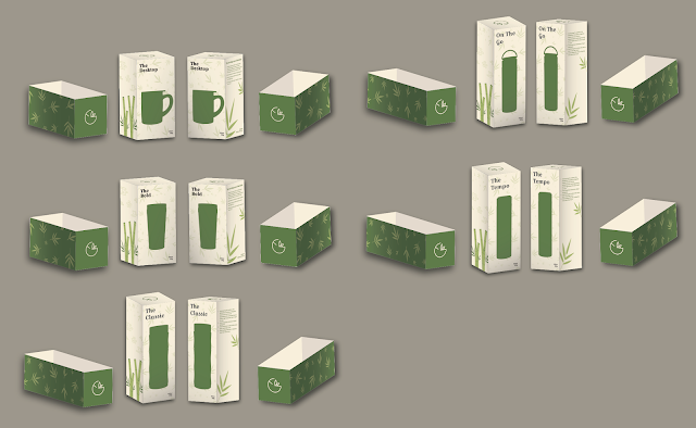 Moving on, I changed the direction for the bamboo and tested out the wording placement. Furthermore, I made two versions of the design on the bamboo one with full colour and another with only outlines. As for the inner box, I think it would be too plain to put it blank so I decided to add the bamboo leaves in the design to create a connection with the cover design.